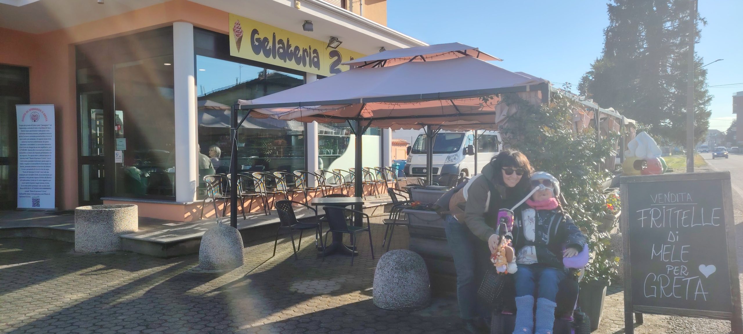 Siamo lieti di annunciare che la Gelateria Due Pini ha deciso di proseguire il suo supporto. Nelle settimane a seguire, continueranno a offrire i loro deliziosi prodotti, destinando i proventi alla raccolta fondi “Ruote di speranza X Greta”. Questo impegno continuativo è di grande importanza e siamo estremamente grati per la loro dedizione.
